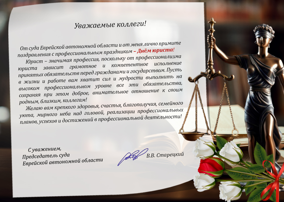 Поздравление председателя суда ЕАО В.В. Старецкого с Днём юриста