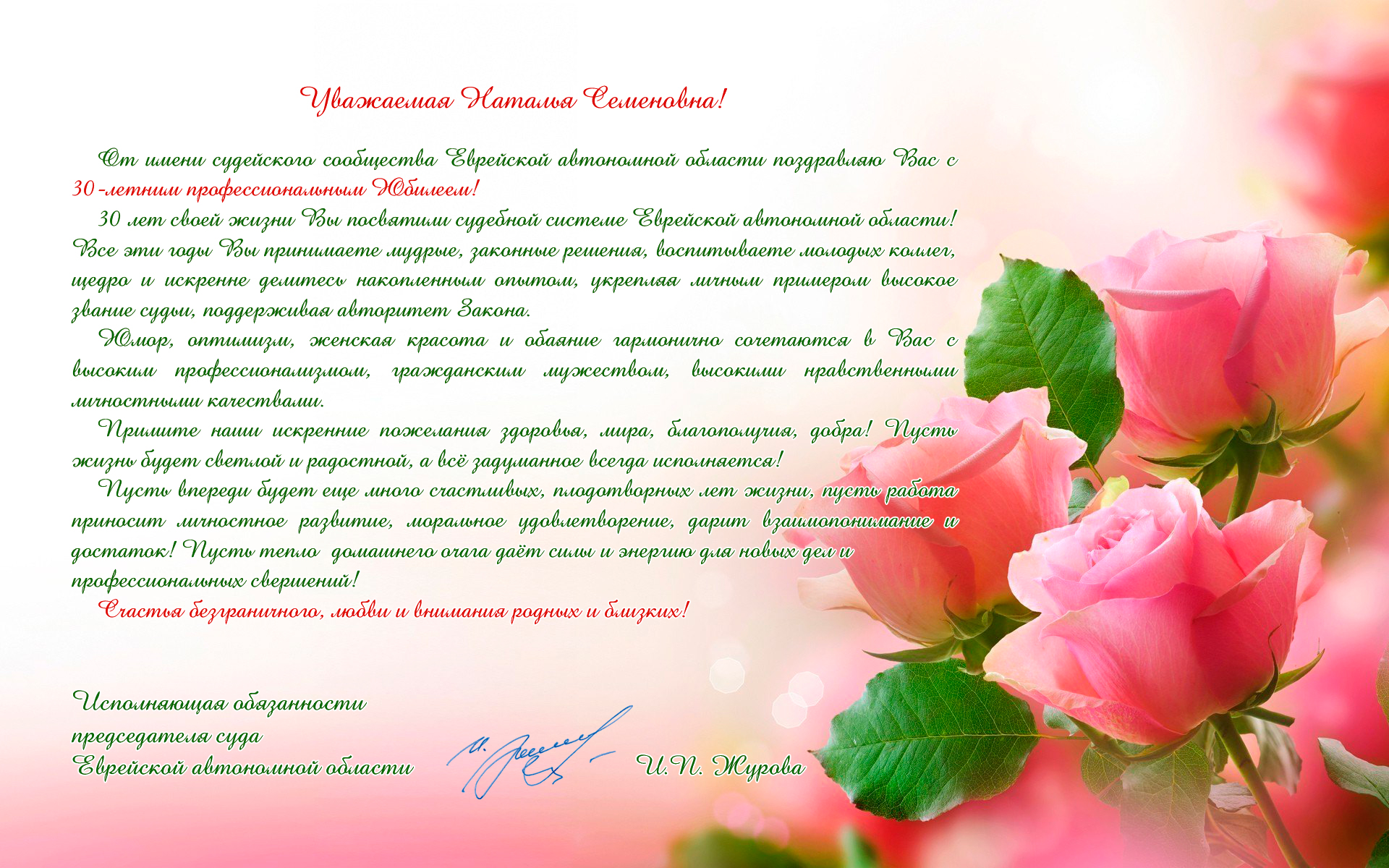 30-летие служения Правосудию отмечает судья суда Еврейской автономной области Серга Наталья Семеновна!
