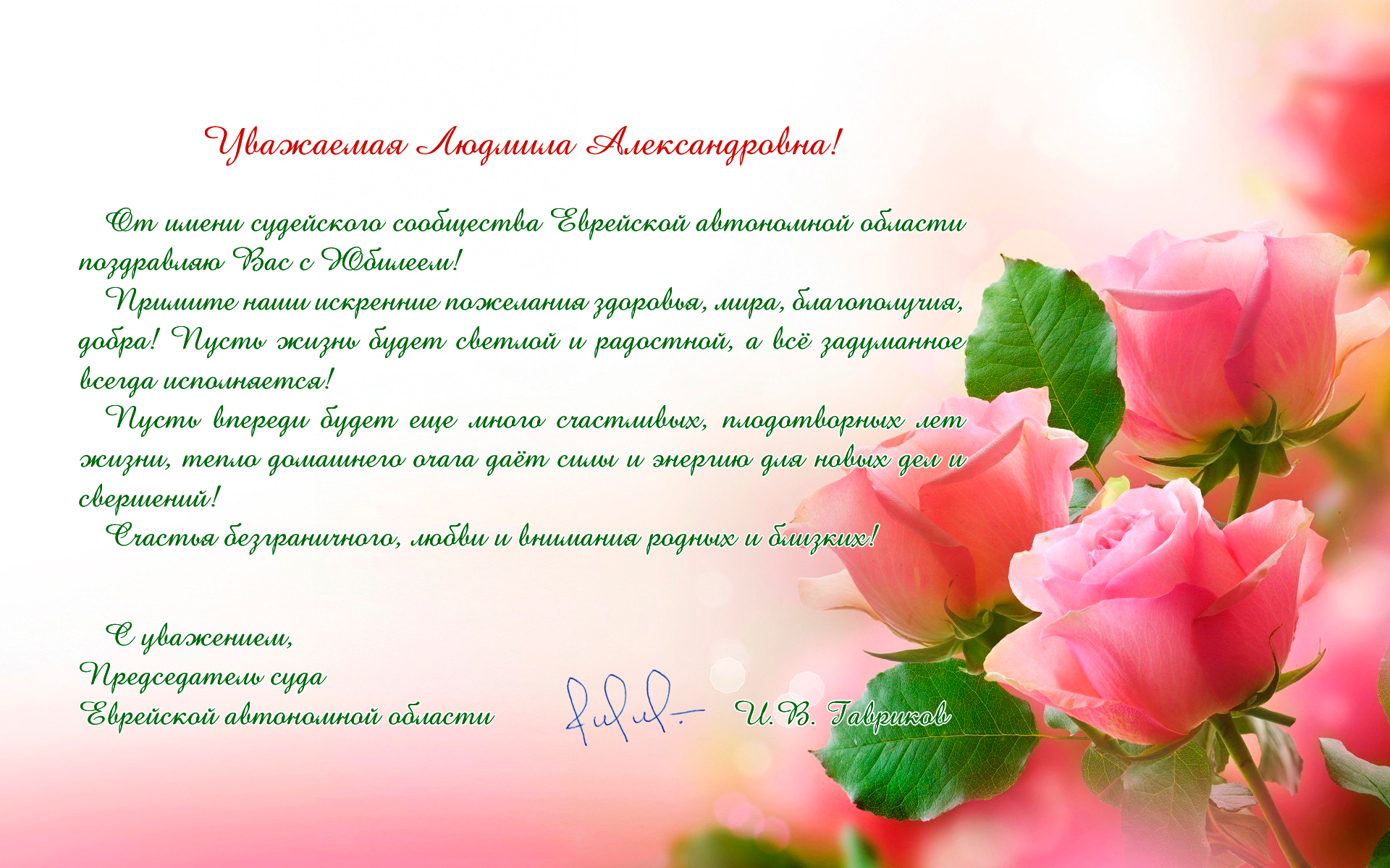 | Поздравление с Юбилеем судьи в отставке Зуевой Л.А. | версия для печати |